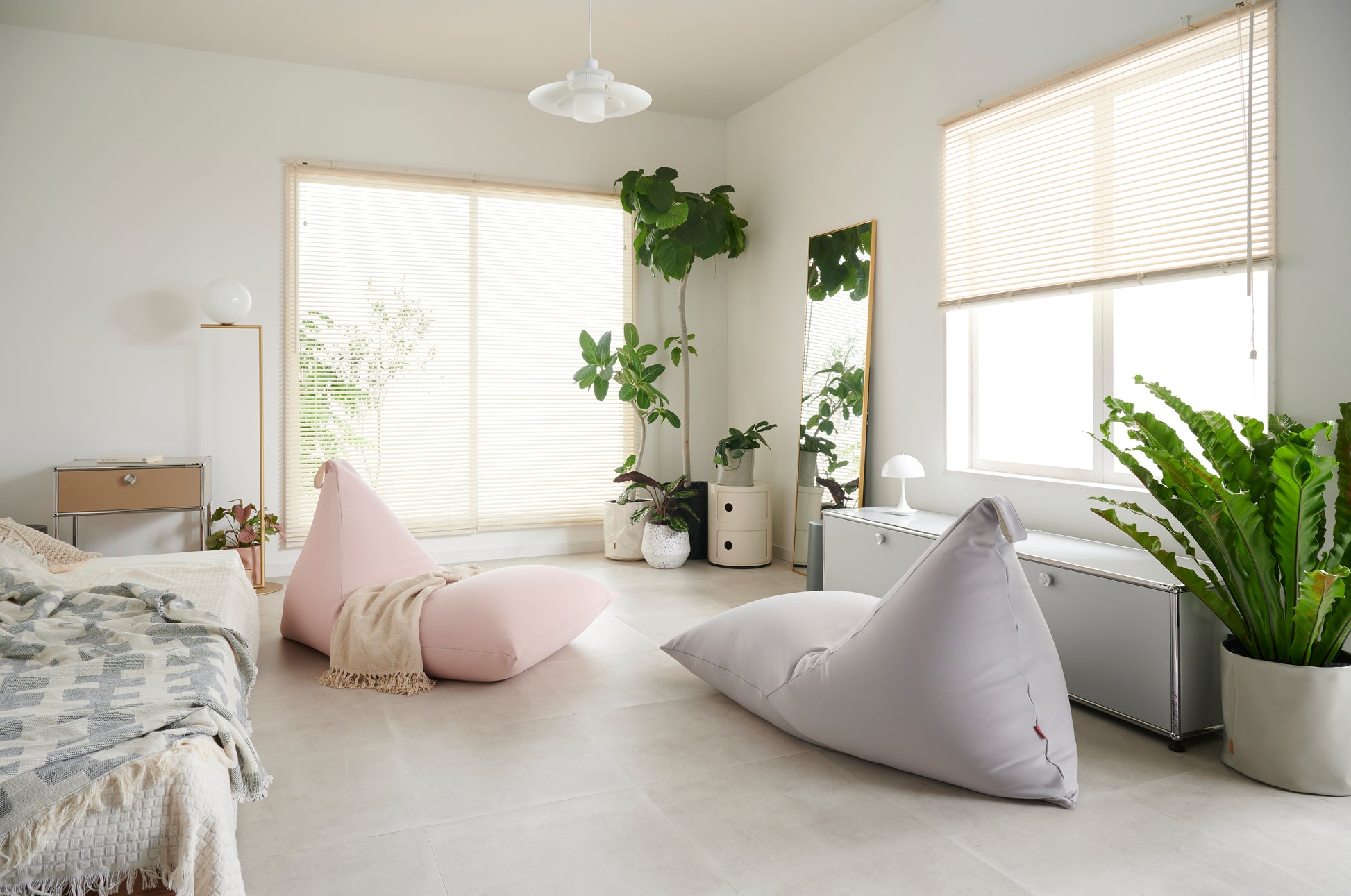 落ち着いた色味でどんなお部屋にもなじむ「ポトラクッション 170Lサイズ」。体をすっぽり包み込み、リラックス感抜群。ビーズの補充可能で長寿命。ニットカバーはカバーリングや付け替えが簡単。