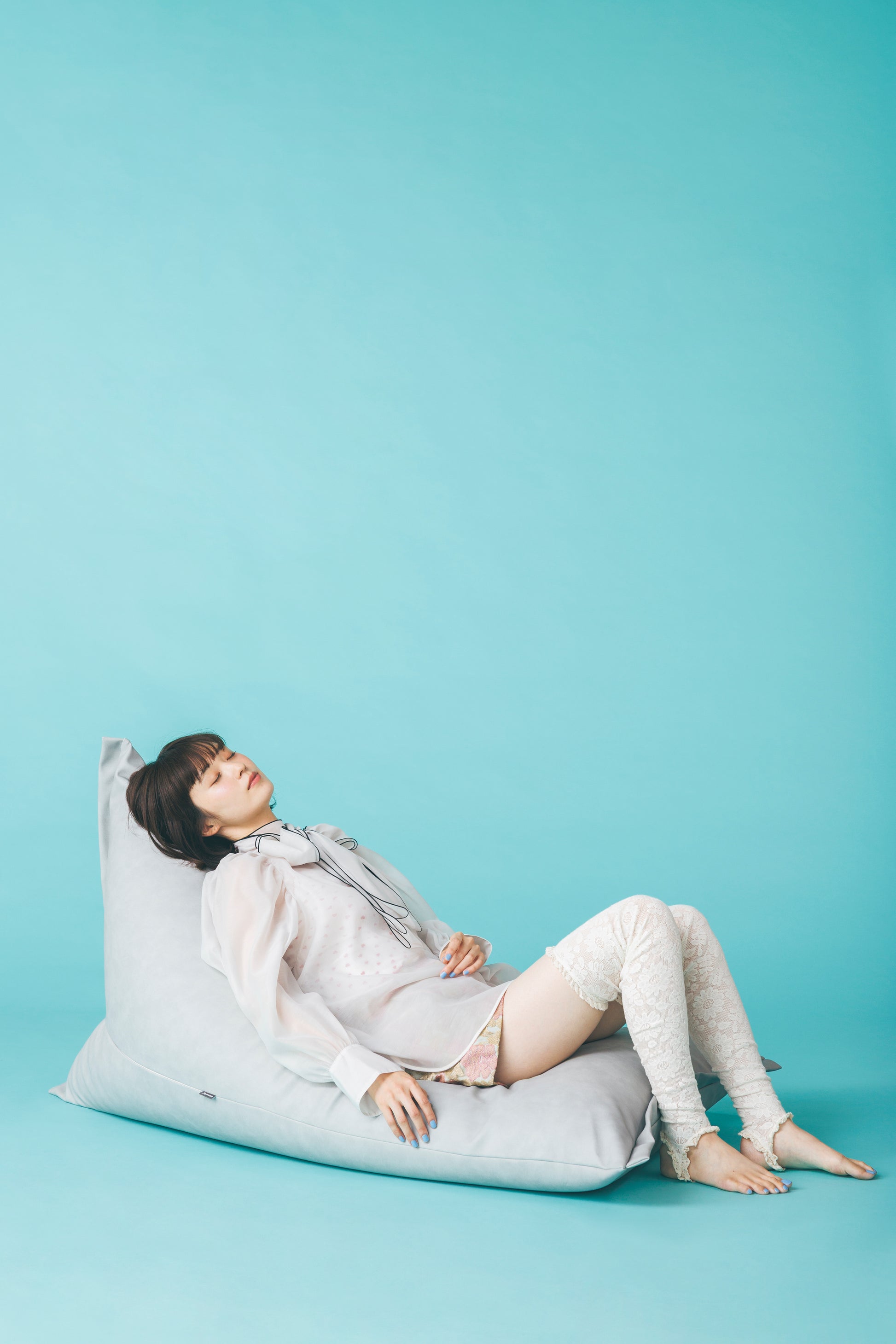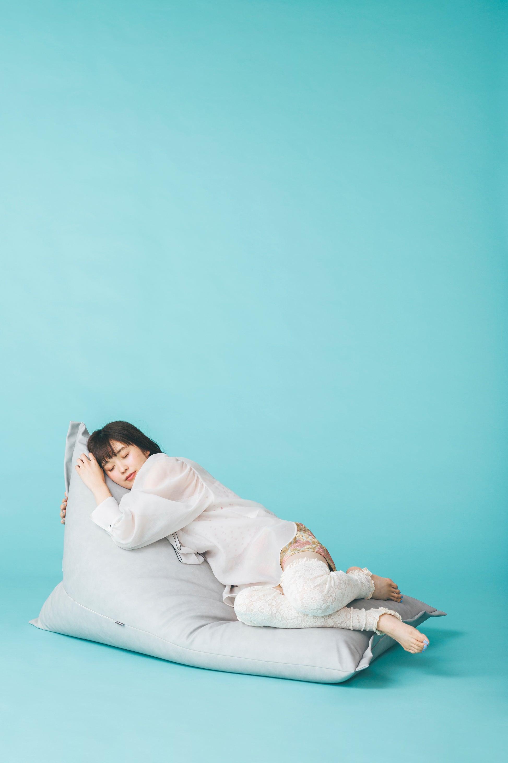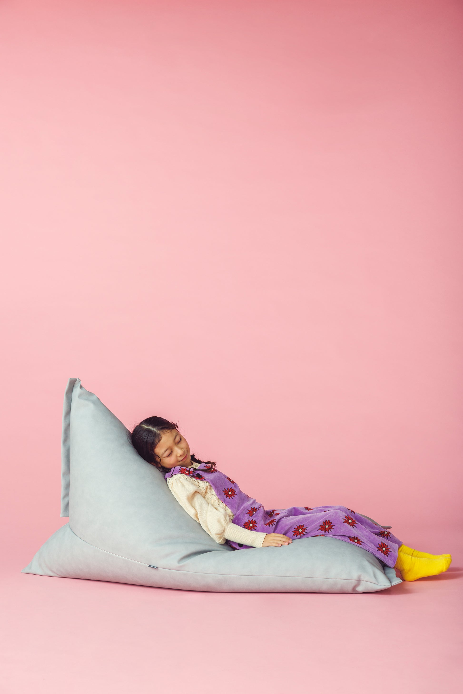 あえて“3割の隙間”を設けた三角型ポトラプラスは、真中に座ると座椅子、前の方に座ると寝椅子のように、ビーズがスッと移動して体にフィット。包み込まれるような座り心地を生み出します。