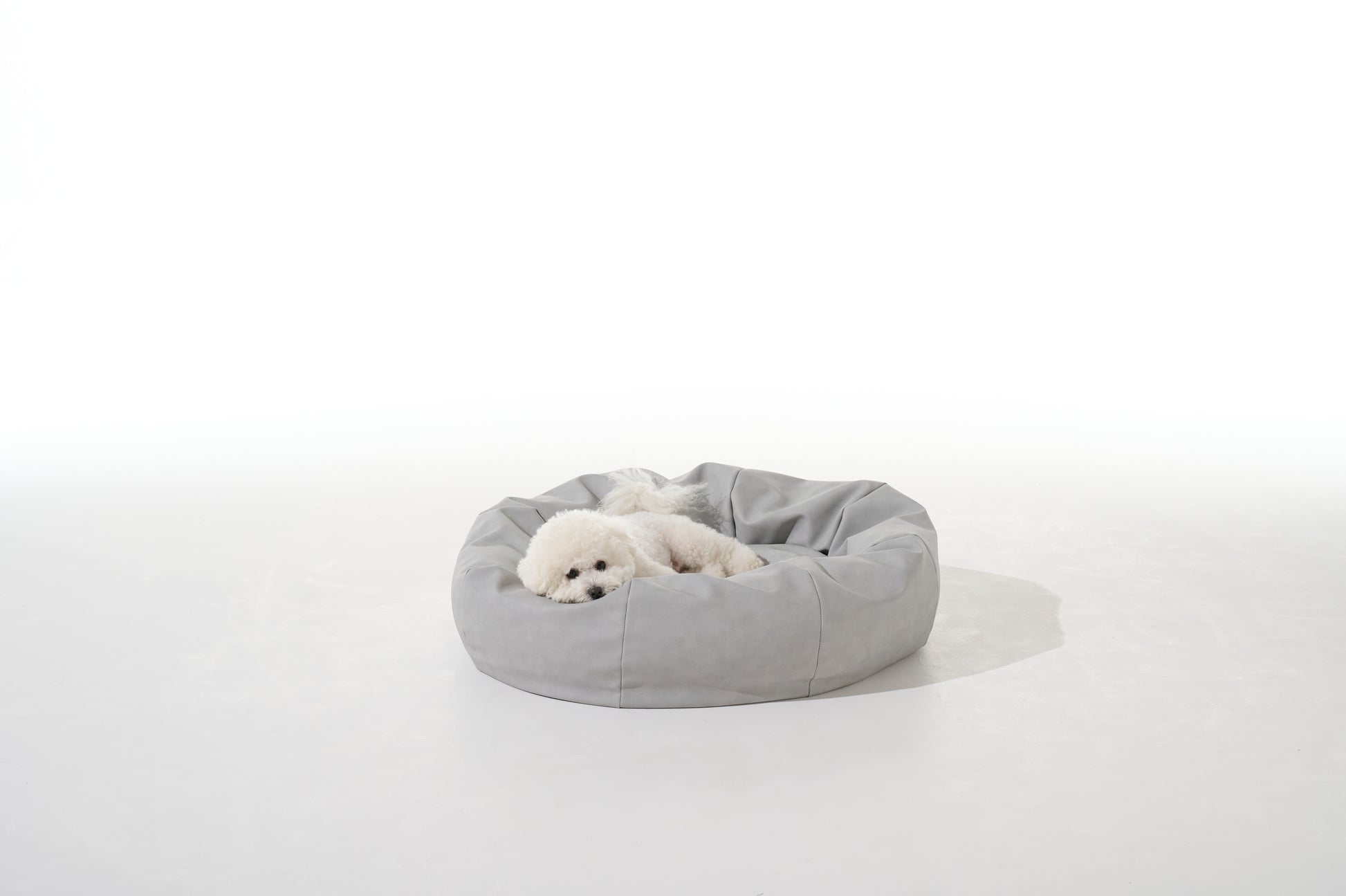 高級感のあるオーバル型のペットベッド。次亜塩素酸にて清拭できるのでいつも清潔に使えます。