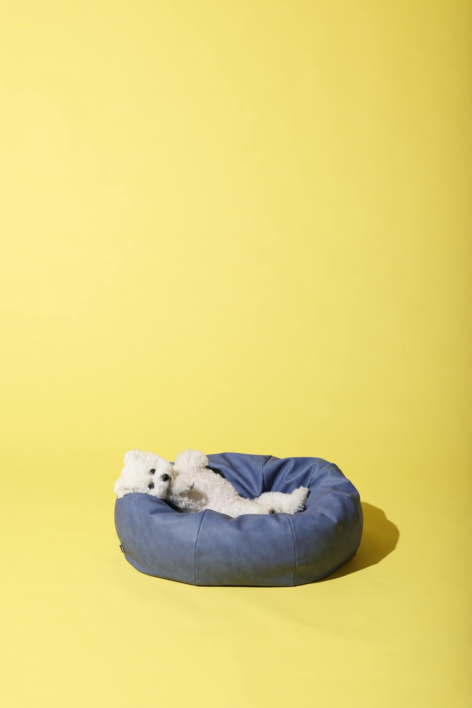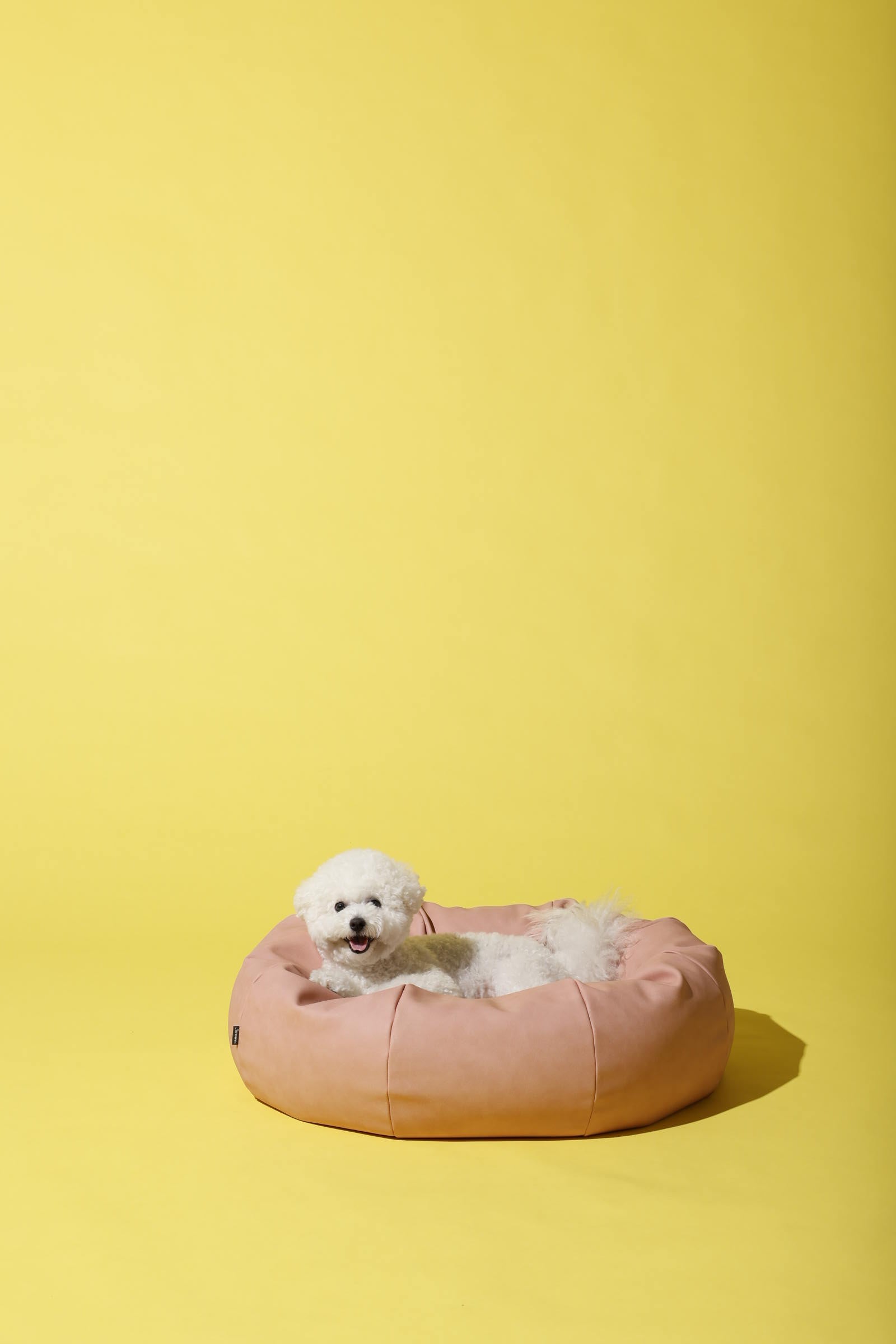 ワンちゃんが、ビーズ部分に顎をのせて、気持ち良くうたた寝できるように考えられたペットベッド。